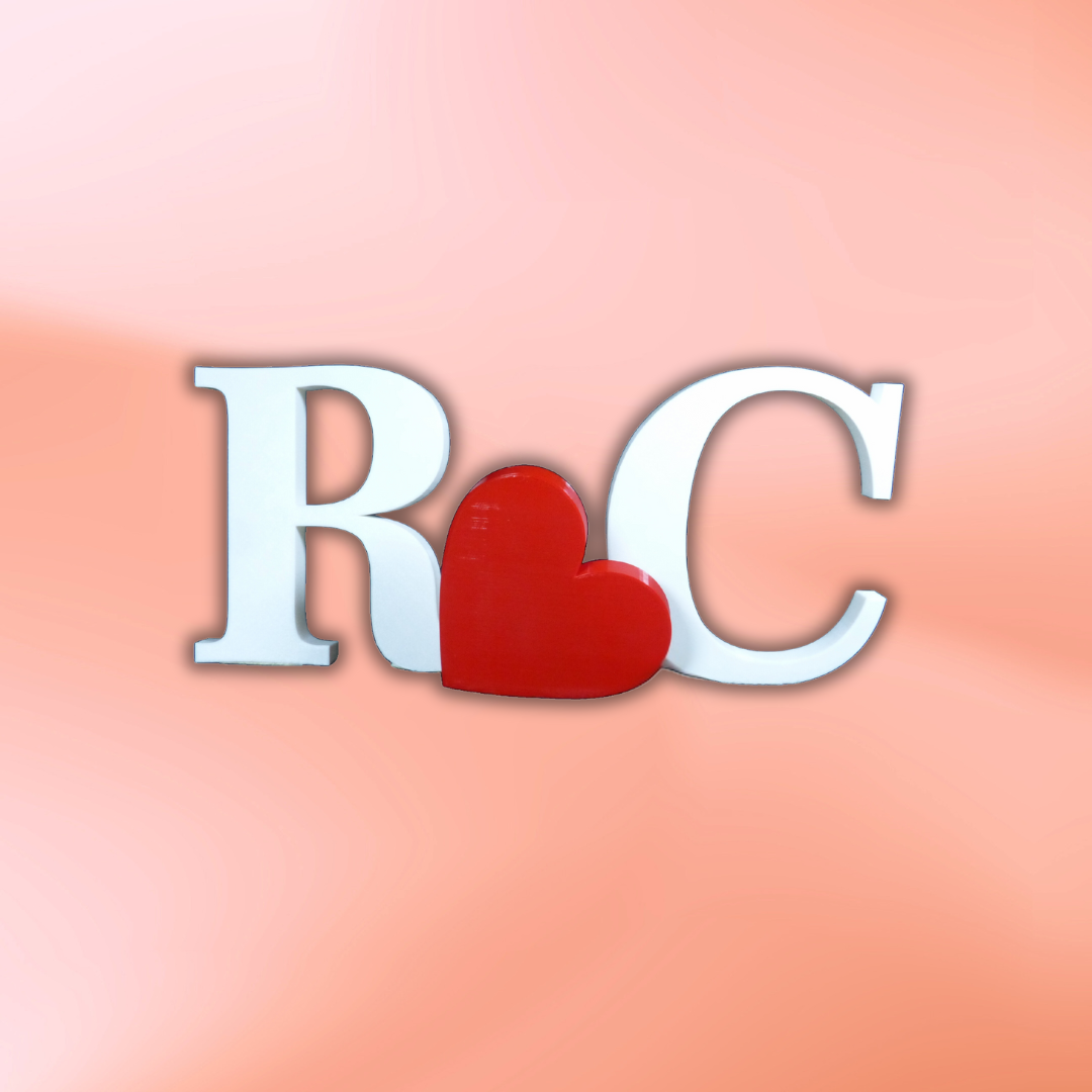 Celebra el amor con nuestras iniciales decorativas de parejas fabricadas en impresión 3D. Disponibles en dos opciones: una con un elegante "&" y otra con un romántico corazón entre las iniciales, estas piezas son perfectas para añadir un toque personalizado y significativo a cualquier espacio.